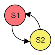 Sinelabore supports two basic modes of operation. Either the generated state machines react on events. Only if an event is present a transition is taken (e.g. evDoorClosed, evButtonPressed). Events are eventually send to the state machine using an event queue (see above). Alternatively transitions are triggered by boolean conditions. If a boolean condition is true a state change happens (e.g. DI0==true). The latter one is useful if binary signals should be processed like shown in these two designs (signal shaping function blocks)(PLCOpen function block). In this case the state machine runs without receiving a dedicated event. Based on the current state, conditions derived from boolean signals are used to trigger state transitions.