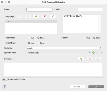 - Code generation to ssc xml in obfuscated format. I.e. removing real state name, event names, … This allows to share models for bug tracking or other purposes without giving away confidential information. A configuration parameter is available for that purpose.