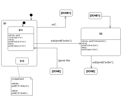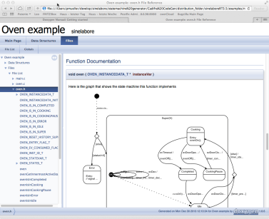 -doxygen | Creates a dot based description of the state diagram as part of the C/C++ file. This allows Doxygen to add a state machine diagram to the software documentation. |