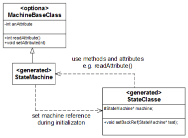 - In Appendix A, different options are discussed on how to integrate the generated state machine into your code. Also take a look at the tools section in the appendix. It helps you to get started with a specific UML tool.