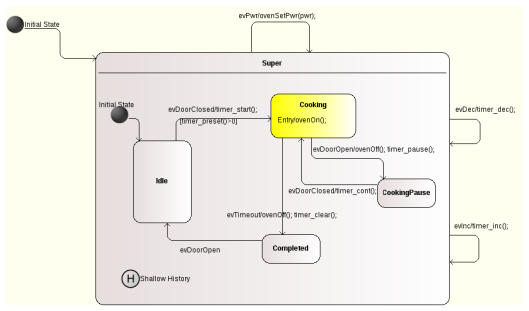 - Extended history state handling added. It is now possible to end a transition at a history state. Only if a transition ends in a history state will the previous history be considered when entering the state set. Otherwise the default entry chain is used. The new